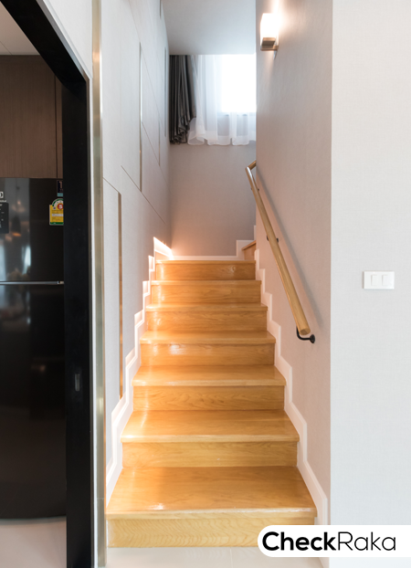 ห้องนอนของแม่บ้านอยู่ติดกับห้องน้ำ ถัดจากนั้นเป็นห้องเก็บของใต้บันได