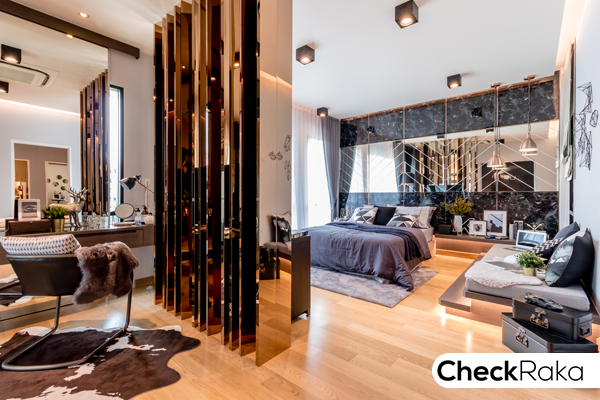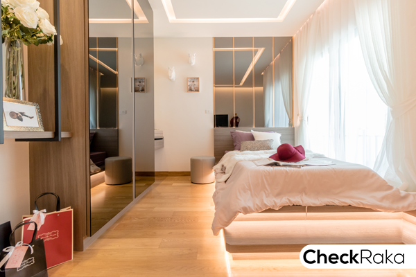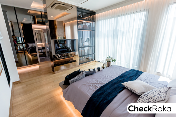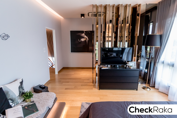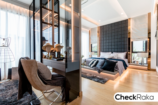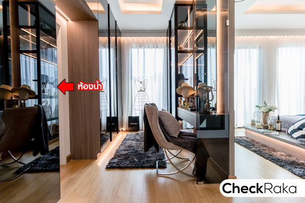 เมื่อกั้นแล้วจะได้ Walk-in Closet มีขนาดกว้างสามารถดีไซน์ตู้เสื้อผ้าและโต๊ะเครื่องแป้งได้ตามใจชอบ