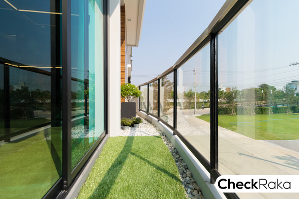 ปลูกไม้กระถางเพื่อความสวยงาม พร้อมกับทำราวกั้นกันตกเป็นกระจกให้