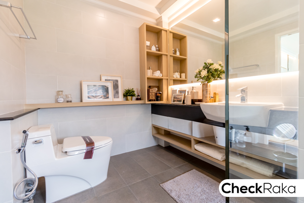 ส่วนอาบน้ำก่อเคาน์เตอร์ขึ้นมาเป็นที่นั่ง ใช้วางของได้