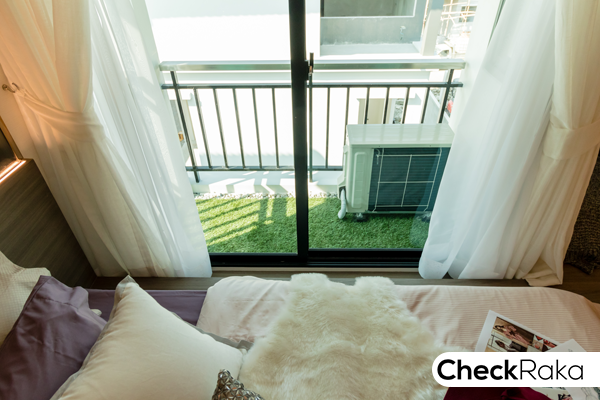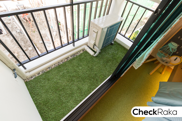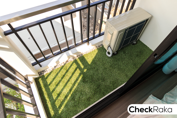 ระเบียงของห้องนอน 3 ขนาดพอเหมาะ สามารถหาต้นไม้เล็กๆ มาปลูกประดับเพื่อความสวยงาม