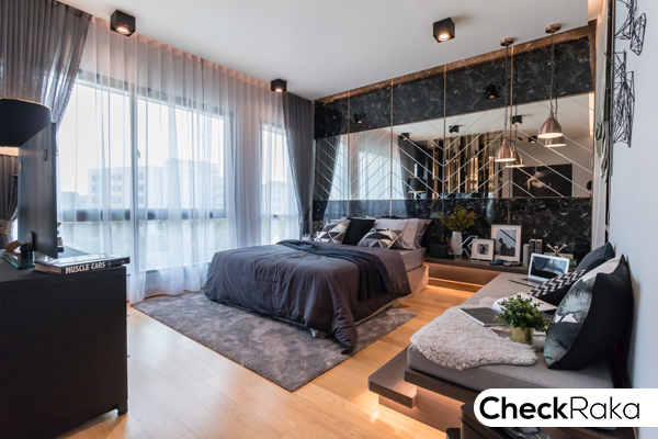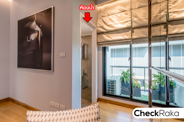และสูงเกือบเต็มผนังด้านหน้าทำให้ห้องดูสว่าง มีห้องน้ำในตัว และ Walk-in Closet