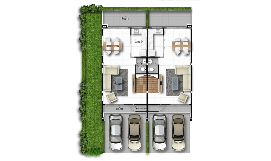 - จัดสวน (เฉพาะบ้านเดี่ยว บ้านแฝด และทาวน์โฮมห้องมุม)