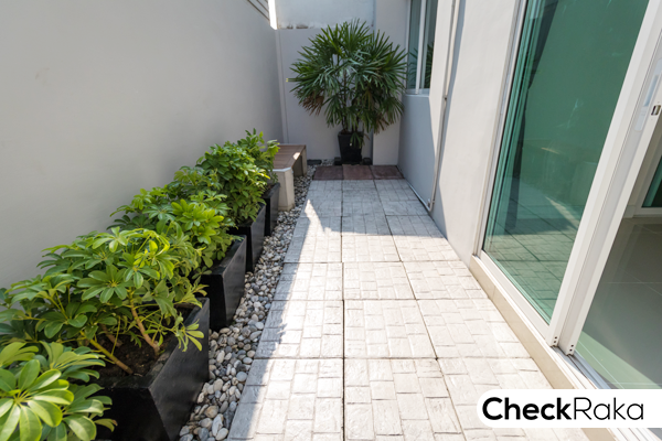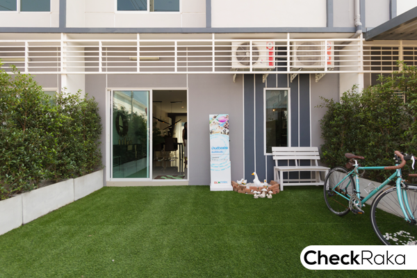 สำหรับลานซักล้างหลังบ้าน ทางโครงการตกแต่งให้เป็นพื้นที่ Outdoor สำหรับนั่งเล่น ปลูกต้นไม้ หรือจะต่อเติม