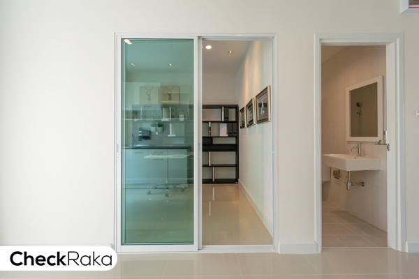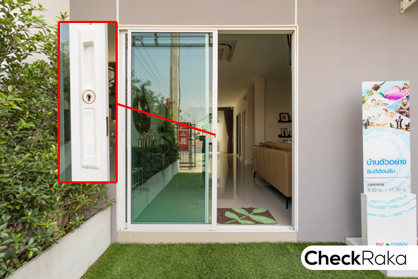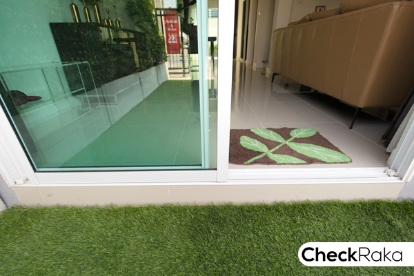 ทางเข้าด้านหน้า เป็นประตูบานเลื่อนกระจกเขียวตัดแสง