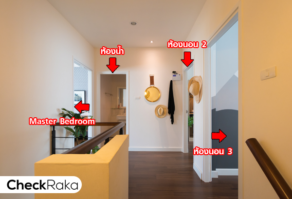 Master Bedroom ห้องนี้จะวางตัวอยู่ฝั่งด้านหน้าบ้าน มีความกว้างของห้องเท่ากับความกว้างของบ้านคือ 5.7 เมตร