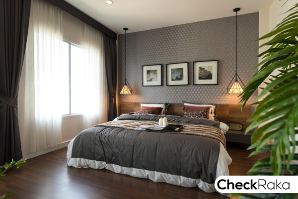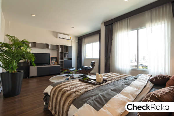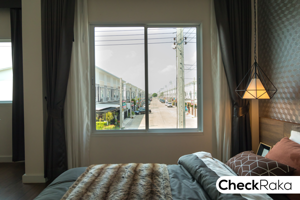 มีหน้าต่างบานเลื่อนขนาดใหญ่ 2 บาน เห็นวิวด้านหน้าบ้าน ภายในห้องสามารถจัดวางเตียงขนาดใหญ่ ตู้เสื้อผ้า