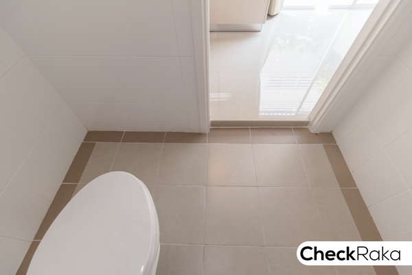 ห้องน้ำชั้น 1 ตัวพื้นลดระดับลงมาจากพื้นปกติเล็กน้อย