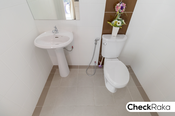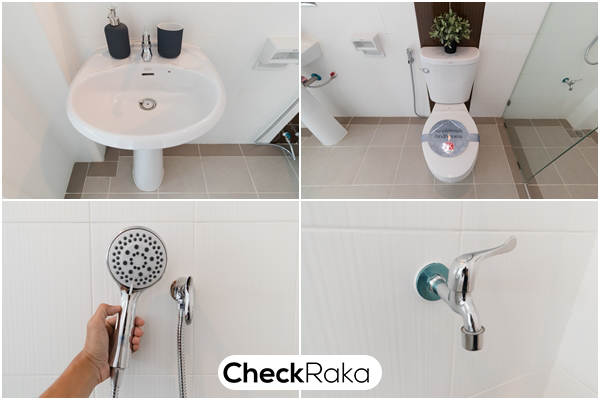 ภายในห้องน้ำให้สุขภัณฑ์มาครบ ทั้งโถสุขภัณฑ์ อ่างล้างหน้า ก๊อกน้ำ กระจก และฝักบัว