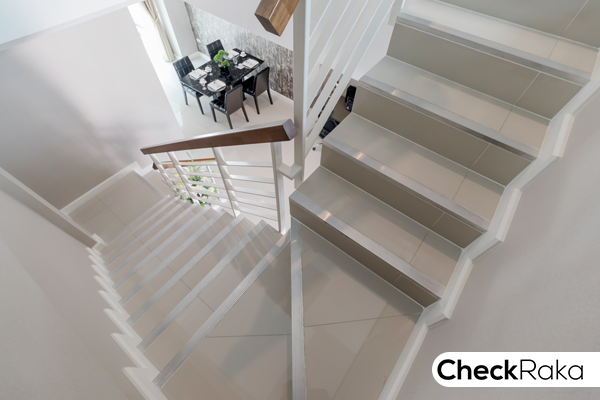 ให้ความรู้สึกมั่นคง เดินแล้วไม่มีเสียงดัง พื้นบันไดปูด้วยกระเบื้องแกรนิตโต้