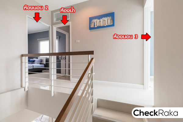 ประตูฝั่งขวามือเป็นห้องน้ำ ตรงกลางคือ ห้องนอนของชั้น 2 ส่วนด้านขวาเป็นบันไดทางขึ้นชั้น 3 ค่ะ