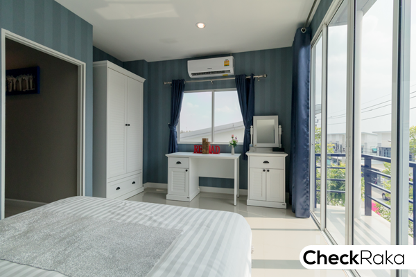 ห้องสุดท้ายที่จะพาทุกท่านมาชม คือห้องนอน 3 ห้องนี้วางอยู่ฝั่งหน้าบ้าน จึงมีความพิเศษตรงที่มีระเบียง