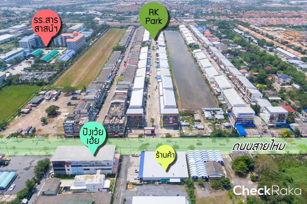โครงการ อาร์เค พาร์ค วัชรพล - สายไหม (RK Park Watcharaphol - Saimai) ตั้งอยู่ติดกับถนนสายไหม เป็นถนนใหญ่ขนาด 4 เลน บริเวณใกล้เคียงโครงการส่วนใหญ่เป็นหมู่บ้านจัดสรรที่มีมานานแล้ว และมีตึกแถวเปิดเป็นร้านค้าอยู่มากมาย และยังมีที่ดินเปล่าอยู่เยอะพอสมควร คาดว่าน่าจะยังสามารถพัฒนาได้อีกในอนาคตค่ะ