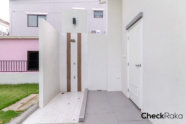 เปิดไปด้านหลังจะมีห้องน้ำและฝักบัวสำหรับล้างตัวก่อนลงสระ