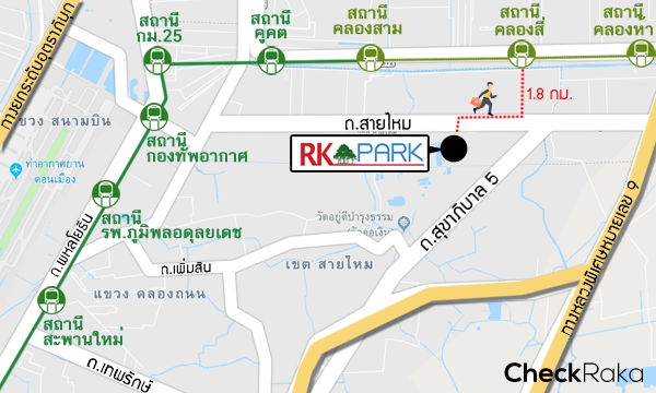 โครงการ อาร์เค พาร์ค วัชรพล - สายไหม (RK Park Watcharaphol - Saimai) ตั้งอยู่บนถนนสายไหม แขวงสายไหม เขตสายไหม กรุงเทพมหานคร 10220 โดยย่านสายไหมนี้ถือว่าเป็นย่านชุมชนยอดฮิตเลยทีเดียวค่ะ มีหมู่บ้านจัดสรรอยู่ย่านนี้หลากหลายโครงการ ทำให้สิ่งอำนวยความสะดวกบริเวณนี้ค่อนข้างจะครอบคลุมในทุกรอบด้าน มีทั้งโรงเรียนสารสาสน์วิเทศสายไหม ที่อยู่ติดกับโครงการเลยทีเดียว และมีตลาดล้อมรอบอยู่ทุกทิศทาง