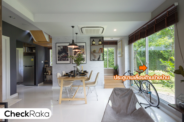 ภายในห้อง มีหน้าต่างบานเลื่อนให้ 1 จุด และมีกระจกบาน Fix ด้านล่างของหน้าต่าง ช่วยเพิ่มความสว่างให้ห้อง