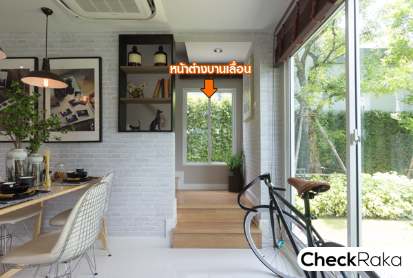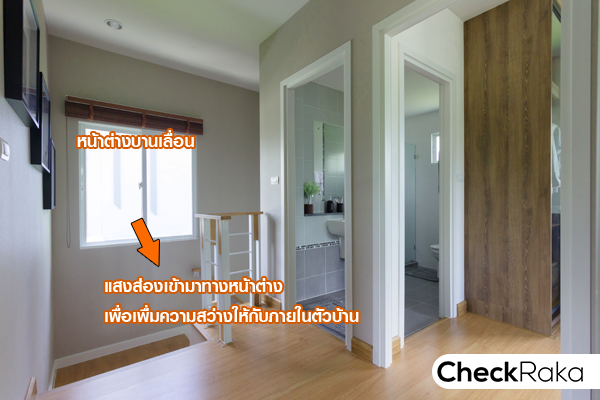 ขึ้นมาถึงชั้น 2 จะเห็นหน้าต่างบานเลื่อนตรงผนังช่วงบันไดขั้นบนสุดพอดี ทำให้แสงธรรมชาติเข้ามาส่วนนี้ได้