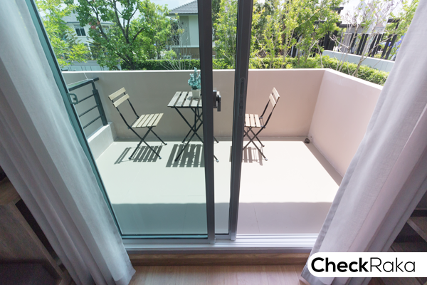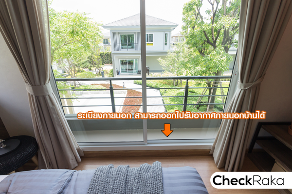 ประตูบานเลื่อนทั้งกว้างและสูง เปิดออกไปที่ระเบียงได้