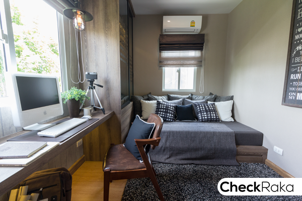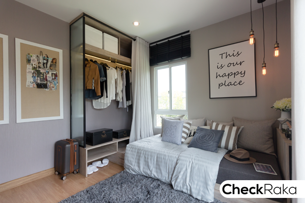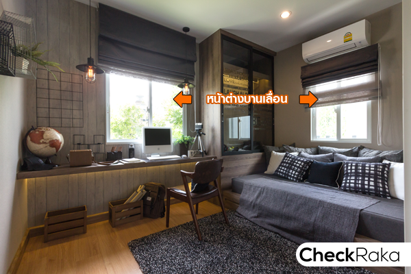 ห้องสุดท้ายคือห้องนอน 3 ทางโครงการตกแต่งเป็นห้องทำงาน มีหน้าต่างบานเลื่อน 2 บาน