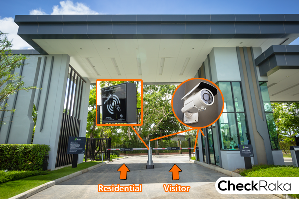ประตูทางเข้า-ออก แยกระหว่างลูกบ้าน (Residential) กับคนภายนอก (Visitor) ที่มาติดต่อ ข้อดีคือทำให้คนที่อาศัย