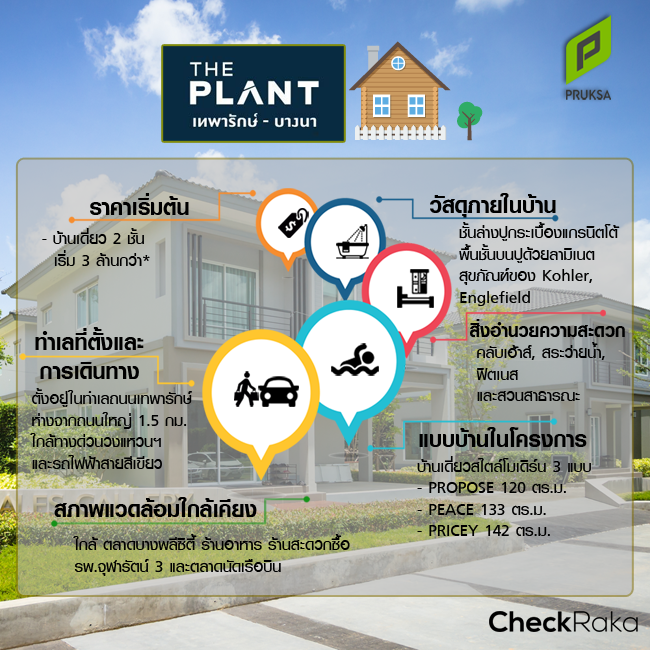 โครงการ "THE PLANT เทพารักษ์ - บางนา (The Plant Thepharak - Bangna)" เป็นโครงการบ้านเดี่ยว 2 ชั้น ตั้งอยู่บนถนนเทพารักษ์ ตำบลบางปลา อำเภอบางพลี จังหวัดสมุทรปราการ เดินทางเข้า-ออกโครงการด้วยเส้นทางหลัก ถนนเทพารักษ์ มีบ้านทั้งหมด 254 หลัง บนพื้นที่โครงการ 56-1-38.4 ไร่ ถนนตรงซุ้มประตูทางเข้ากว้าง 20 เมตร ถนนหลักกว้าง 12 เมตร ถนนภายในซอยกว้าง 8 เมตร มีรั้วรอบโครงการสูงถึง 3 เมตร พร้อมเหล็กแหลม 50 เซนติเมตร ภายในโครงการมีสิ่งอำนวยความสะดวกครบครัน ทั้ง Club house สระว่ายน้ำ ฟิตเนส และสวนส่วนกลาง ขนาด 1 ไร่ (สิ่งอำนวยความสะดวกทั้งหมดนี้กำลังอยู่ระหว่างการก่อสร้าง) ถนนทางเข้าโครงการตั้งแต่ปากซอยถนนเทพารักษ์ เป็นถนนสาธารณะประโยชน์ใช้ร่วมกับผู้อื่น ส่วนถนนตั้งแต่สะพานข้ามคลองเป็นถนนภาระจำยอม กว้าง 16 เมตรค่ะ