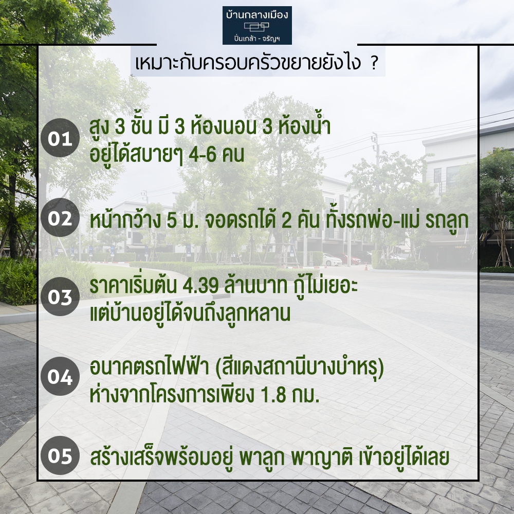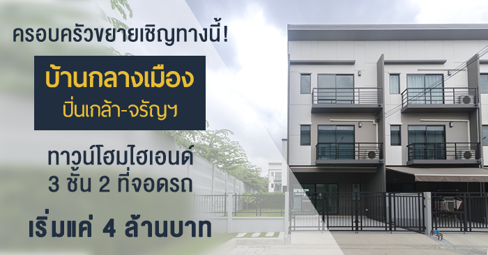 ครอบครัวขยายเชิญทางนี้! "บ้านกลางเมือง ปิ่นเกล้า-จรัญฯ" ทาวน์โฮมไฮเอนด์ 3 ชั้น 2 ที่จอดรถ เริ่มแค่ 4 ล้านบาท
