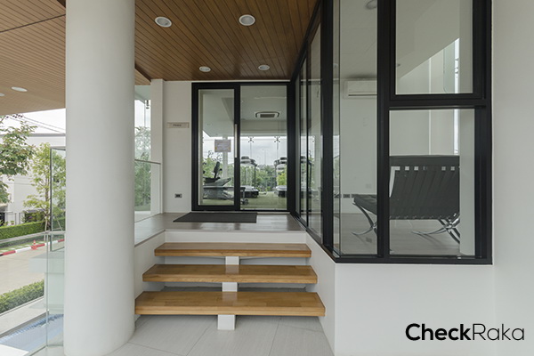 พื้นที่ด้านหน้าเป็นพื้นที่สำหรับห้องรับแขก ที่วางโซฟาขนาดใหญ่ได้ ด้านในจะเป็นพื้นที่สำหรับวางโต๊ะรับประทานอาหาร