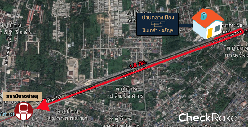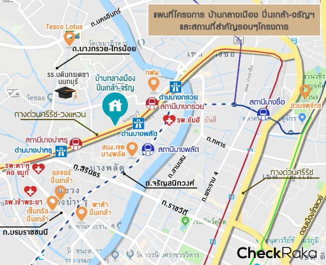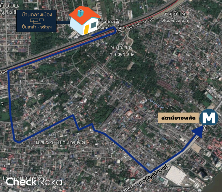 ระยะทางจากโครงการไปยังรถไฟฟ้าสายสีน้ำเงิน สถานีบางพลัด ระยะห่างประมาณ 3.6 กม.