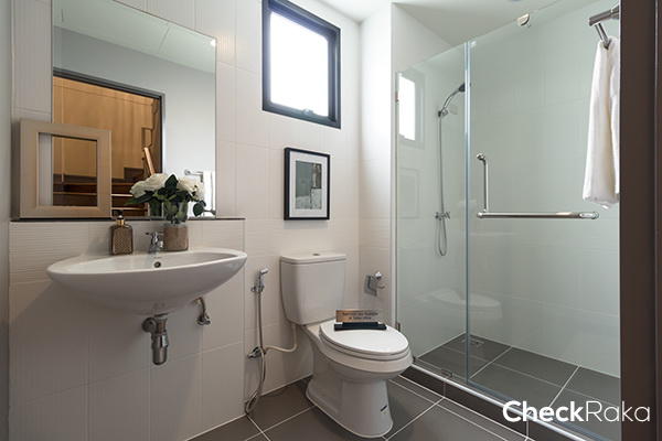 โดยจะมีห้องน้ำอยู่คั่นกลาง แบ่งสัดส่วนการใช้งานไว้ให้