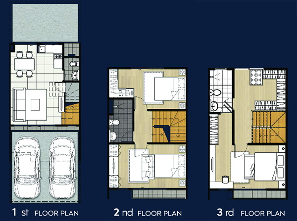 ก่อนอื่นมาดูแปลนบ้านกันค่ะ ทาวน์โฮม 3 ชั้น 2 ที่จอดรถ