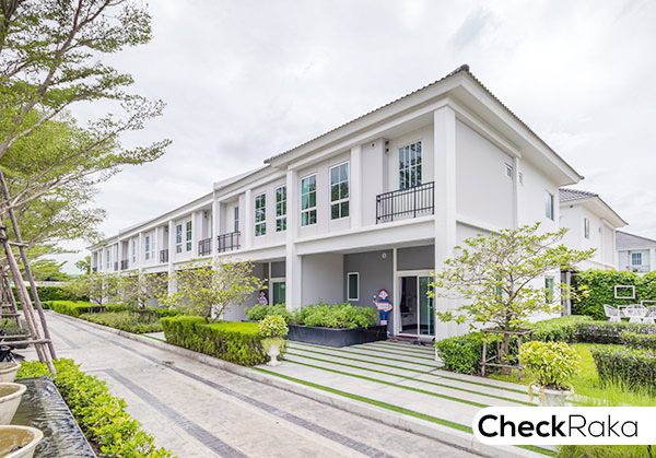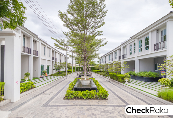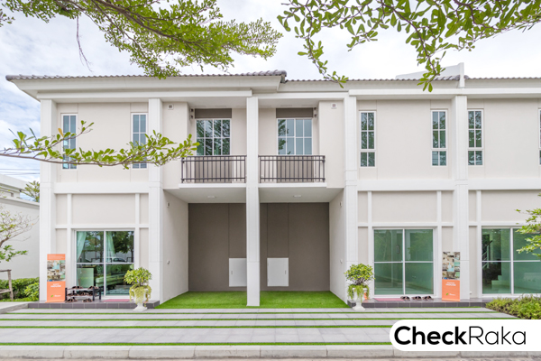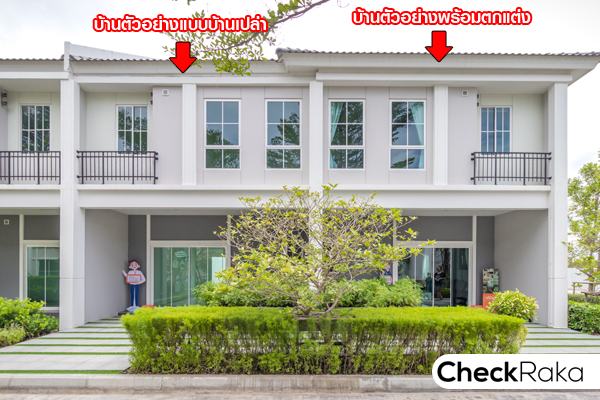 สำหรับบ้านตัวอย่างพร้อมตกแต่ง และแบบบ้านเปล่า เป็นทาวน์โฮมหลังติดกัน อยู่บล็อคเดียวกัน