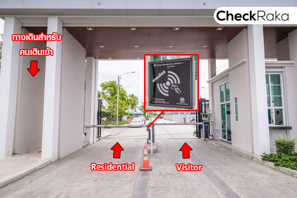 ประตูทางเข้า-ออก แยกระหว่างลูกบ้าน (Residential) กับคนภายนอก (Visitor) ที่มาติดต่อ ซึ่งเป็นข้อดีนะคะ เพราะทำให้ลูกบ้านมีความสะดวกยิ่งขึ้น ไม่ต้องเสียเวลารอคนภายนอกที่กำลังแลกบัตรค่ะ ส่วนที่ซุ้มประตูทางเข้า