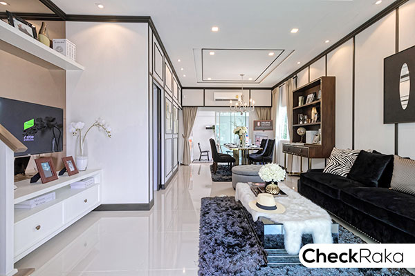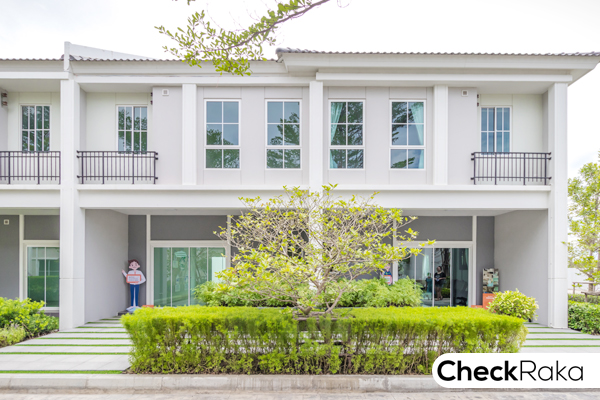 ตัวทาวน์โฮมออกแบบสไตล์กรีก เน้นสีขาวสะอาดตา บ้านที่ส่งมอบให้ลูกค้าจะเป็นบ้านเปล่า