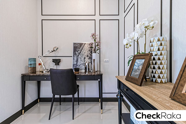 ตรงข้ามโซฟารับแขก เป็นพื้นที่สำหรับจัดวางทีวี หรือตกแต่งเป็นชั้นวางของก็ได้