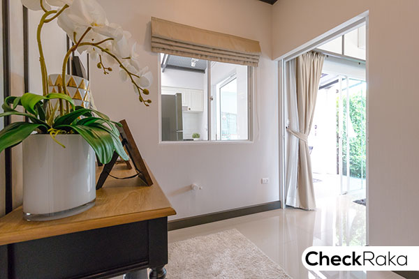 ถ้าหากเป็นบ้านแปลงมุม บางหลังจะมีหน้าต่างบานเลื่อนด้านข้างบ้านมาให้ด้วย
