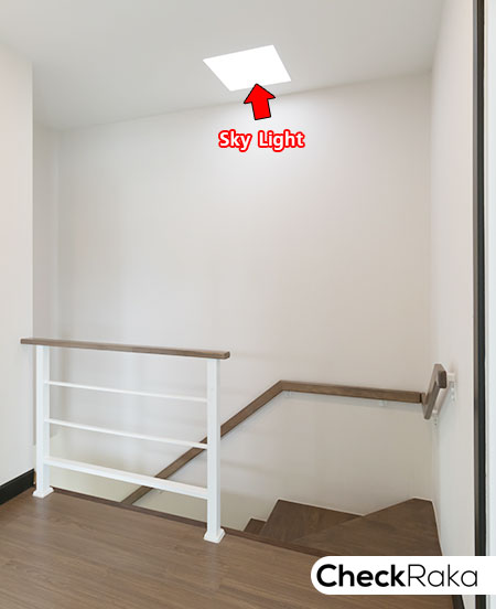 มี Sky Light ที่ฝ้าเพดานช่วยรับแสงธรรมชาติเข้าสู่ตัวบ้าน