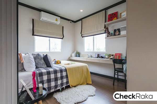 วางเตียงขนาดเล็กและตู้ได้พอดี หรือจะปรับเป็นห้องทำงาน ห้องดูหนังสำหรับครอบครัวก็ได้เหมือนกัน
