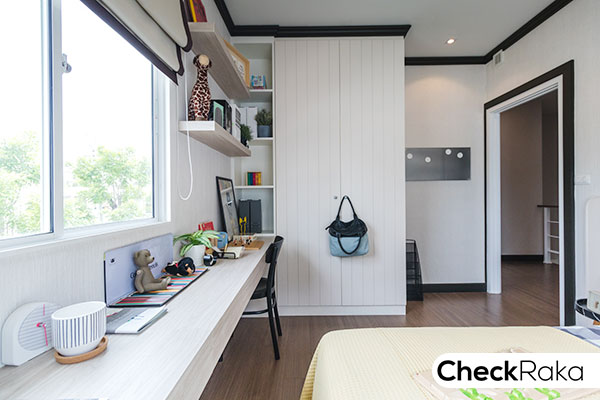 วางตู้เสื้อผ้า และโต๊ะอ่านหนังสือได้พอดี