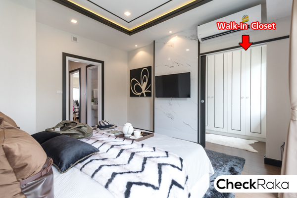 พื้นที่ปลายเตียงสามารถกั้นเป็น Mini Walk in Closet ทำให้ห้องดูเป็นสัดส่วนมากขึ้น
