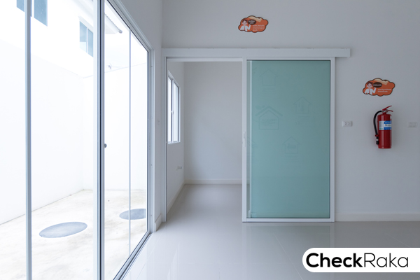 มีหน้าต่างบานเลื่อน 1 บาน สำหรับบ้านตัวอย่างจะติดตั้งประตูบานเลื่อนมาให้ด้วย