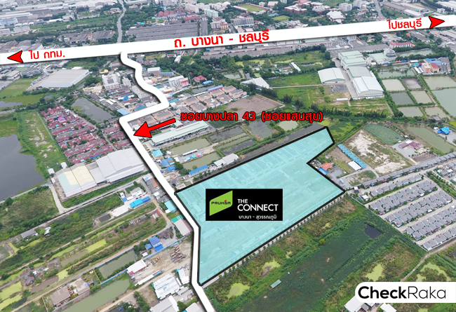 ภาพจากมุมสูง ของ เดอะ คอนเนค บางนา - สุวรรณภูมิ แสดงให้เห็นขอบเขตของโครงการ