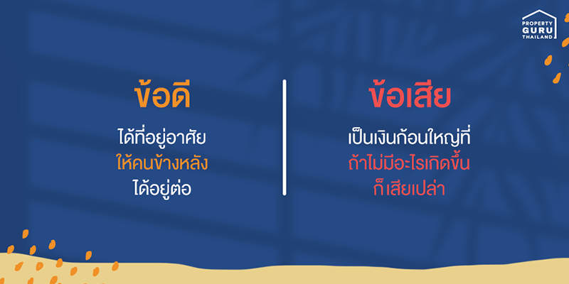 ประกันชนิดนี้ก็มีทั้งข้อดีและข้อเสียในตัวของมันค่ะ ข้อดีก็คือ หากว่าเราเป็นผู้ที่ต้องรับภาระผ่อนอยู่คนเดียว แล้วคนที่อยู่ข้างหลัง อาทิ คู่สมรส หรือทายาท ที่มีรายได้น้อยกว่า หรือมีรายได้ไม่แน่นอน การทำประกันแบบนี้ช่วยให้อุ่นใจได้ว่าถ้าเราเกิดเหตุร้ายจนถึงแก่ความตาย เขาก็ยังมีทรัพย์สินซึ่งก็คือบ้านที่เรากู้ซื้อให้อยู่ต่อได้อย่างสบายใจ หรือจะไม่ได้รับภาระผ่อนต่อที่ไม่หนักจนเกินไป แต่ผลเสียที่เห็นได้ชัดคือ เป็นภาระทางการเงินที่ก้อนใหญ่พอควร ซึ่งถ้าไม่มีอะไรเกิดขึ้นเลย ก็เท่ากับเป็นเงินทิ้งเปล่าไป