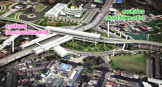 จุด Interchange ของรถไฟฟ้าทั้ง 2 สาย บริเวณอนุสาวรีย์หลักสี่