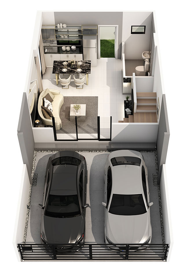 สำหรับแบบบ้านมี 1 แบบ พื้นที่ใช้สอย 106 ตร.ม. ขนาด 3 ห้องนอน 2 ห้องน้ำ และจอดรถได้ 2 คัน จำนวน 287 ยูนิต