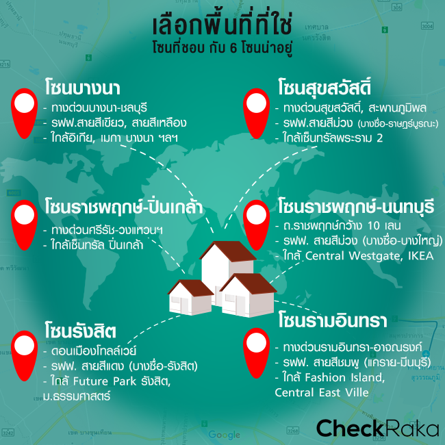 ปัจจุบันความเจริญกำลังขยายตัวออกไปรอบๆ กรุงเทพฯ เนื่องมาจากพื้นที่สำหรับสร้างที่อยู่อาศัยใจกลางเมืองมีน้อยลง และราคาสูงขึ้นมาก หากจะสร้างครอบครัวและมีจำนวนสมาชิกเพิ่มขึ้น การอยู่คอนโดก็คงจะไม่ตอบโจทย์เรื่องพื้นที่ หรือหากจะซื้อบ้านใจกลางเมือง ราคาก็สูงเกินไป ทำให้ปัจจุบันครอบครัวยุคใหม่มีการขยายตัวออกไปสู่พื้นที่ทำเลรอบนอกกรุงเทพฯ และปริมณฑลเป็นจำนวนมาก สำหรับคนที่ชอบอาศัยอยู่ใกล้เมืองหรือแหล่งศูนย์รวมอุตสาหกรรม อาจเลือกทำเลโซน บางนา, ราชพฤกษ์-ปิ่นเกล้า และ สุขสวัสดิ์ โซนที่ตอบโจทย์สำหรับคนที่ต้องการความคล่องตัวในการเดินทาง ชอบไลฟ์สไตล์แบบคนเมือง แต่สำหรับคนที่ชอบทำเลที่มีพื้นที่สีเขียว หลีกหนีจากความวุ่นวายของตัวเมืองมาอยู่กับธรรมชาติ และต้องการบ้านในราคาคุ้มค่า ก็อาจเลือกอยู่โซน รังสิต, รามอินทรา และ ราชพฤกษ์-นนทบุรี เป็นต้น