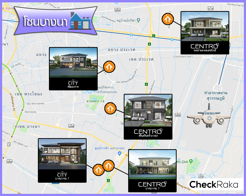 เซนโทร บางนา กม.7 (Centro Bangna KM.7) บ้านเดี่ยวซีรีส์ใหม่ 4-5 ห้องนอน 3-5 ห้องน้ำ 2-3 ที่จอดรถ โดยโครงการตั้งอยู่ใกล้เมกาบางนา, ทางด่วนพิเศษเฉลิมมหานคร (บางนา – ดินแดง), ทางด่วนบูรพาวิถี (บางนา-ชลบุรี), ถนนกาญจนาภิเษก-วงแหวนรอบนอก, รถไฟฟ้า (โครงการในอนาคต) สายสีเหลือง และ สายสีเขียว พร้อมทั้งแวดล้อมด้วย สถานศึกษาและโรงพยาบาลชั้นนำมากมาย