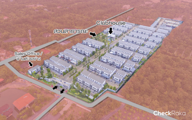 - ปัจจุบันเปิดขายแบบบ้านทั้งหมด 1 แบบ ทาวน์โฮม 2 ชั้น หน้ากว้าง 5.5 เมตร จอดรถ 2 คัน