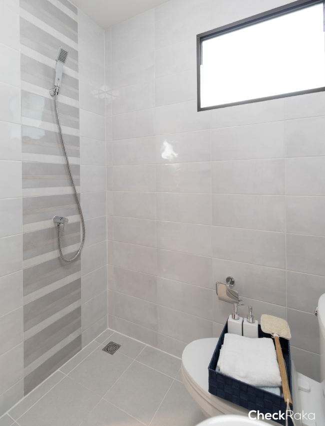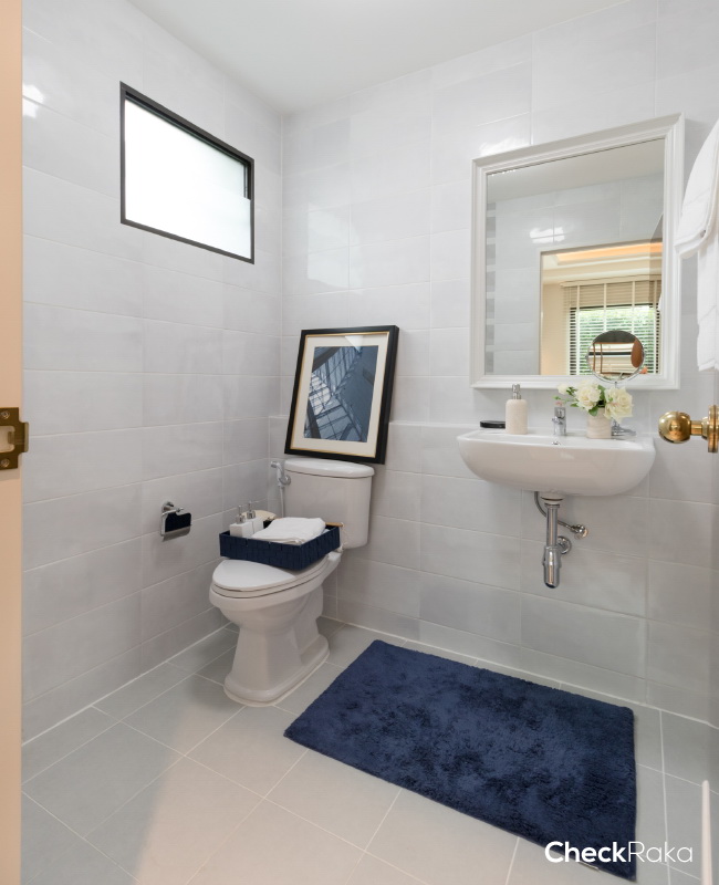 ห้องน้ำชั้นล่างมีทั้งส่วนของโถสุขภัณฑ์