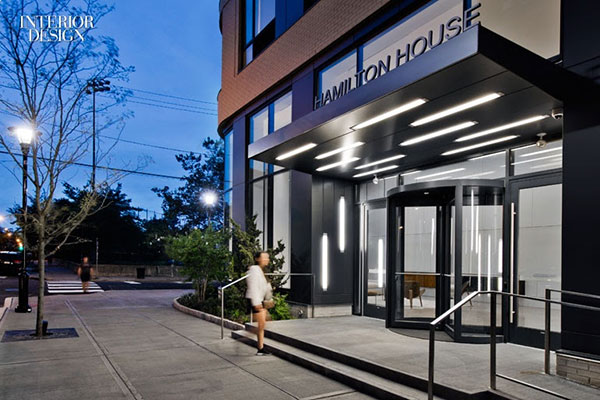 Hamilton House โดดเด่นด้วยตัวอาคารหัวมุมโค้ง เสริมด้วยกระจกรอบๆ ช่วยลดความกระด้าง เพิ่มลูกเล่นด้วยอิฐ และวัสดุสีทึบๆ สไตล์เมเทลดูแข็งแกร่ง กลายเป็นงานฟาซาดโมเดิร์นสุดเท่
