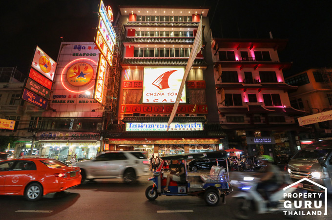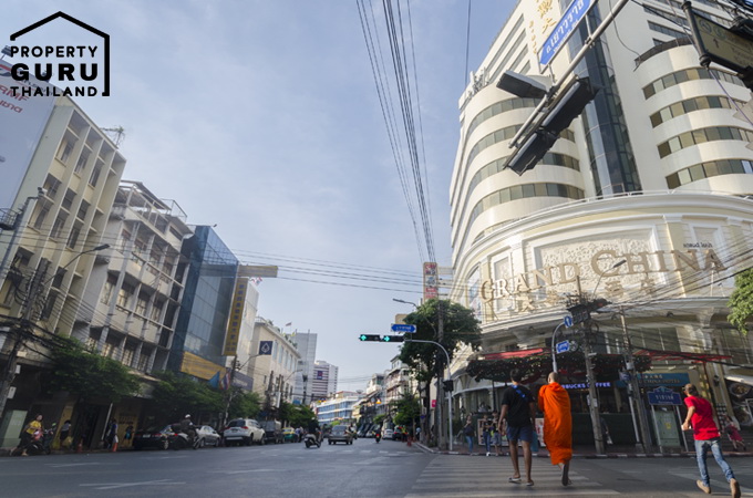 โรงแรม Grand China ตั้งอยู่หัวมุมถนนราชวงศ์ตัดกับถนนเยาวราช